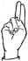 На ћирилици написано БИСЕРА ГУДОВИЋ састоји се из 13 слова [?]. Исписано ћириличном једноручном азбуком за глувонеме: